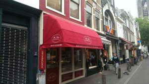 Bedrijven markies rood met opdruk Hennie’s Zonwering