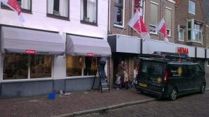 Markiezen grijs met opdruk Hennie’s Zonwering